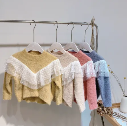 UG nuevo suéter de punto grueso suelto para niñas, ropa de invierno para niños pequeños, ropa para niñas, suéter de lana a la moda