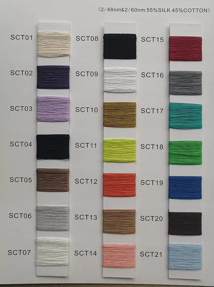 55 % seda, 45 % hilo mezclado con algodón, hilo fino de 2/60 NM, hilo mezclado con algodón y seda teñido, venta al por mayor de fábrica, venta al por mayor de hilo, hilo teñido opcional, precio al por mayor